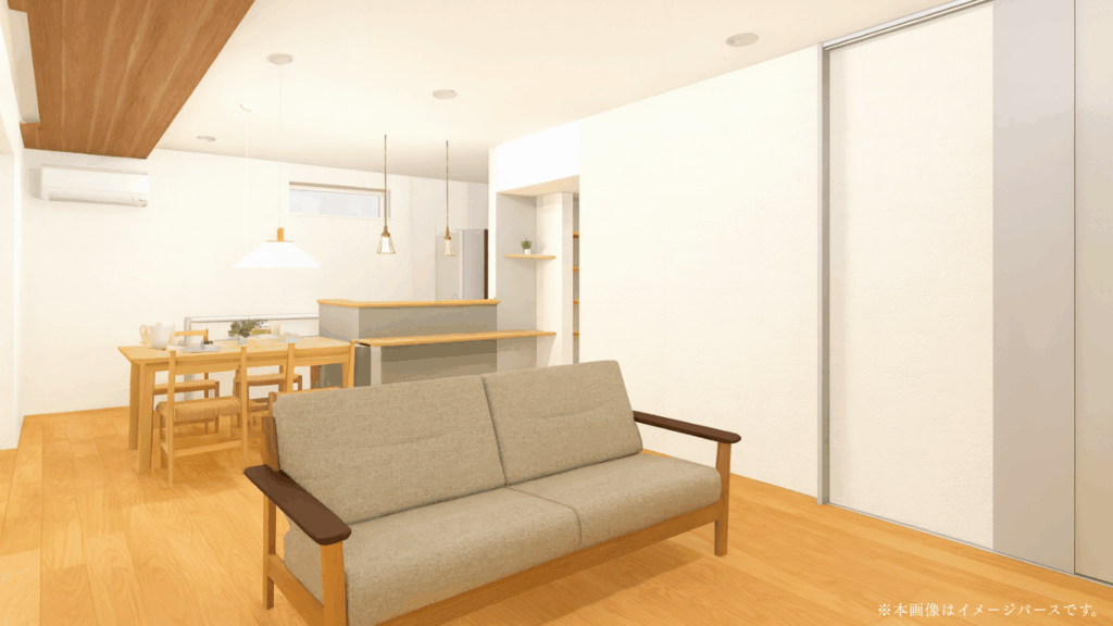 お客様はハイドアから直接リビングへ案内できるので生活感を見せにくいのも◎